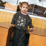 True to size, relaxed fit. We recommend sizing up for a true oversized fit or if the child is tall. Model is 3 and wears a 4y.